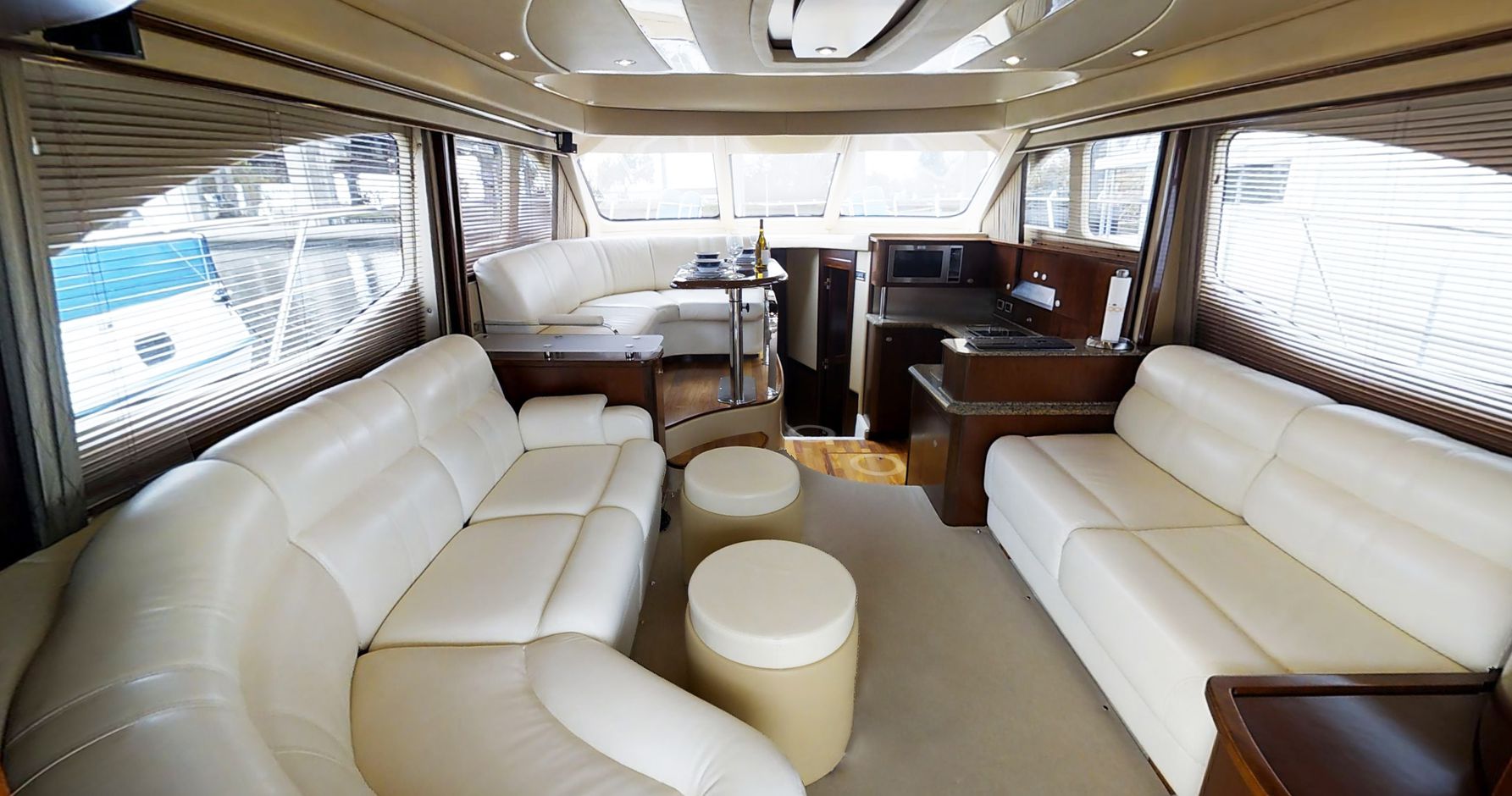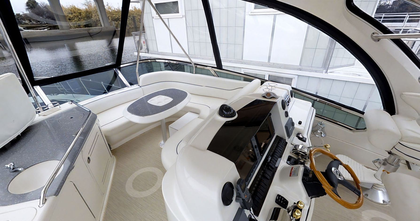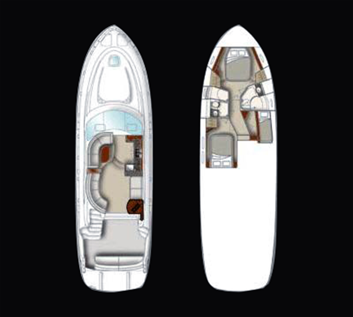 The Sea Ray 52 is so beautifully designed and fully equipped, outfitted with a fiberglass hardtop, Isenglass enclosure and optional bridge air conditioning, this impressive yacht demands attention wherever it goes. Elegant features include wood flooring, fully adjustable thigh-rise helm seating, master and port staterooms with flatscreen TVs and two full head compartments with separate showers.